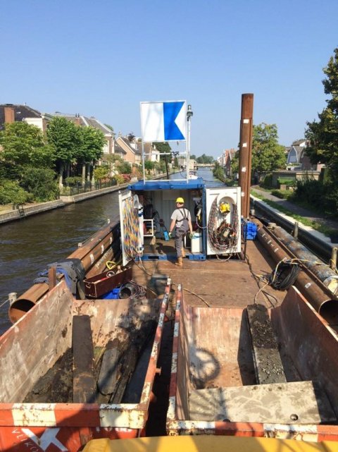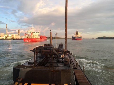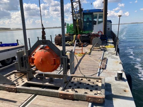 Kraanschip Europa is compleet uitgerust voor het plaatsen en vervangen van lichtopstanden en bebording.