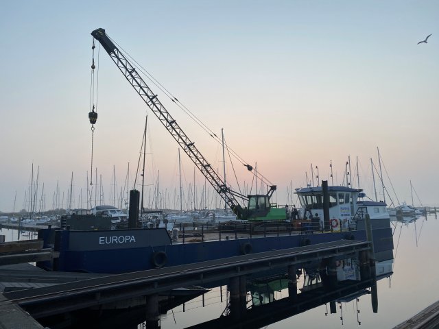 Kraan-en werkschip Europa is voorzien van een vaste kraan met alle benodigde gereedschappen, waaronder een plasmasnijder en lasapparatuur aan boord.
